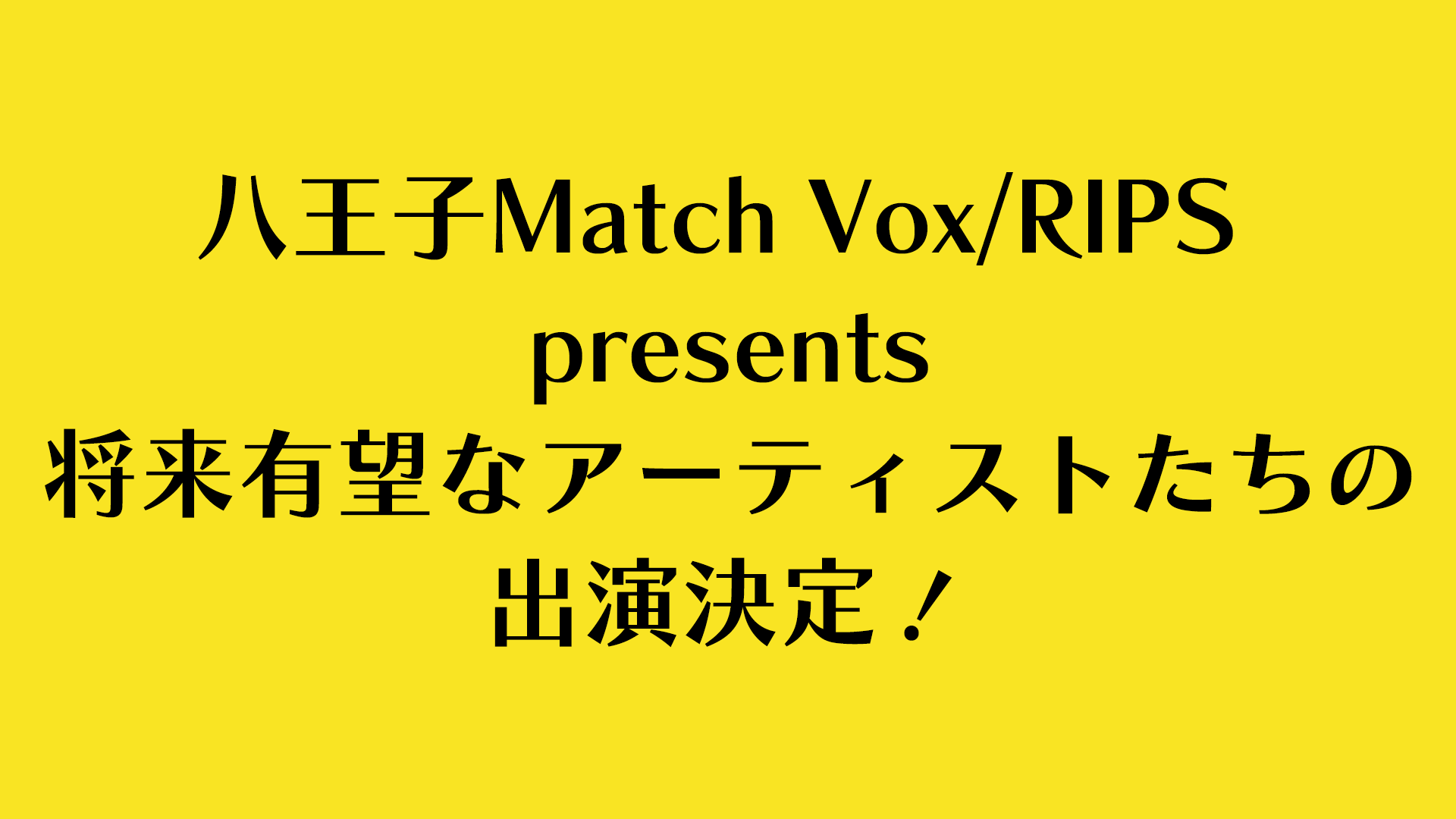 八王子Match Vox/RIPS presents 将来有望なアーティストたちの出演決定!
